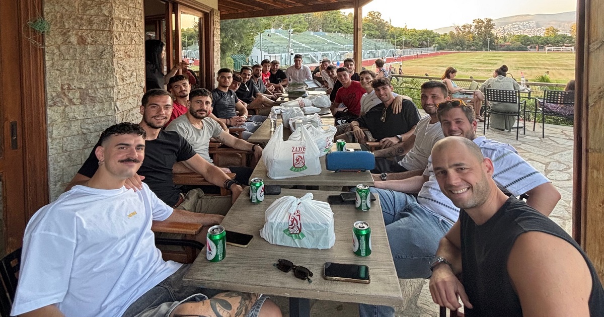 Μετά την τελευταία τους προπόνηση, οι ποδοσφαιριστές μας γευμάστησαν στο εντευκτήριο του Δ.Α.Κ. Βουλιαγμένης, παρουσία του Αντιπροέδρου κ. Κωνσταντίνου Μπέττα, του Προέδρου κ. Ιωάννη Ασλανίδη και του προπονητικού τιμ.